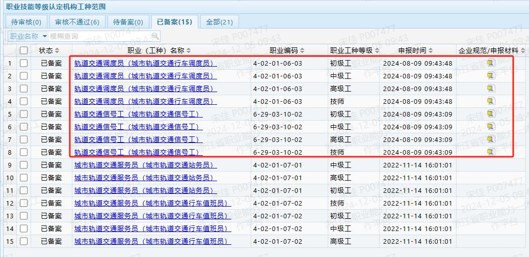 截至目前,市軌道交通集團運營公司職業(yè)技能等級認定評價范圍如下: